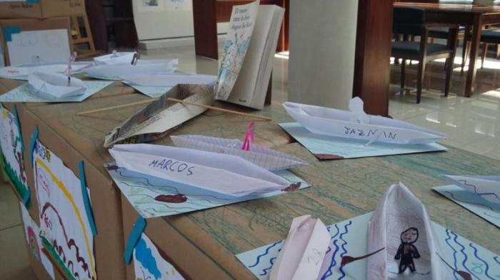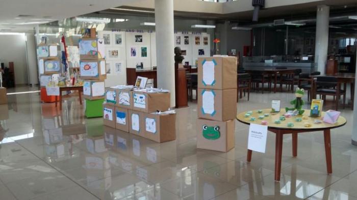 Exposición de trabajos hecho por niños en la BACCN.