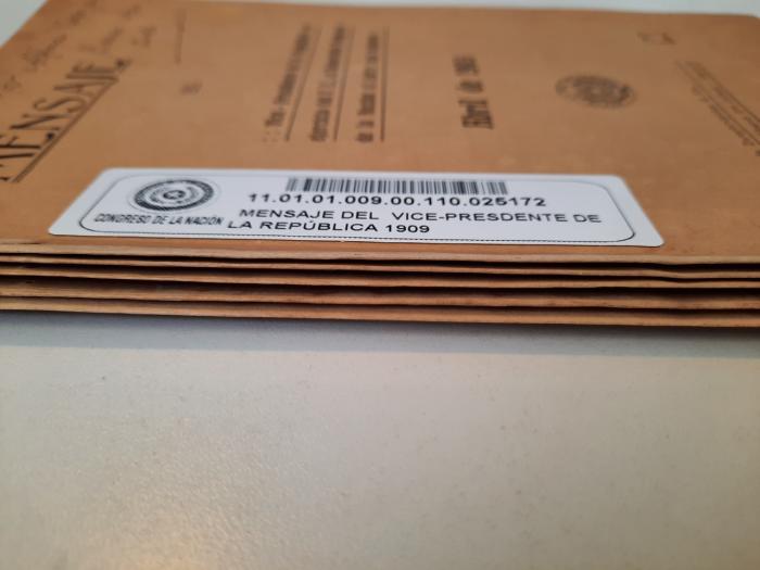 Los Mensajes Presidenciales al inicio del ciclo de sesiones del Honorable Congreso ahora rescatados y resguardados son de los presidentes E. González Navero (1909), Manuel Gondra (1921), Eusebio Ayala ( 1922, 1933, 1934, 1935), Eduardo Schaerer (1913, 1916), Manuel Franco (1917, 1918, 1919), José P. Guggiari (1930, 1931,1932), José Pedro Montero (1920), Eligio Ayala (1925, 1928), Benigno Ferreira (1908), más dos mensajes sin nominaciones.