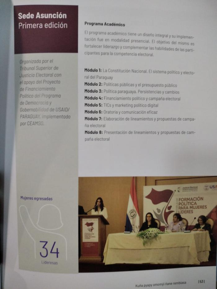 Por otra parte, y desde el ámbito legal, también fueron recepcionados hace unos días un par de ejemplares de la revista Mujeres líderes haciendo historia, kuña pyapy omomýi ñane rembiasa. Se trata de una realización de la Unidad de Políticas de género del tribunal superior de la Justicia Electoral, edición 2021, el mismo cuenta con la participación del Institute for democracy and electoral assistance (IDEA), con el apoyo de la Unión Europea.