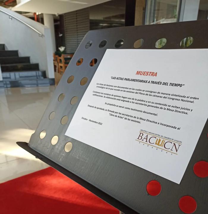 En la Biblioteca del Congreso se encuentra habilitada una exposición que contiene actas, documentos manuscritos, casettes de audio y documentos de las sesiones del Congreso de la Nación, y los cuales forman parte del acervo de nuestro Archivo Central.