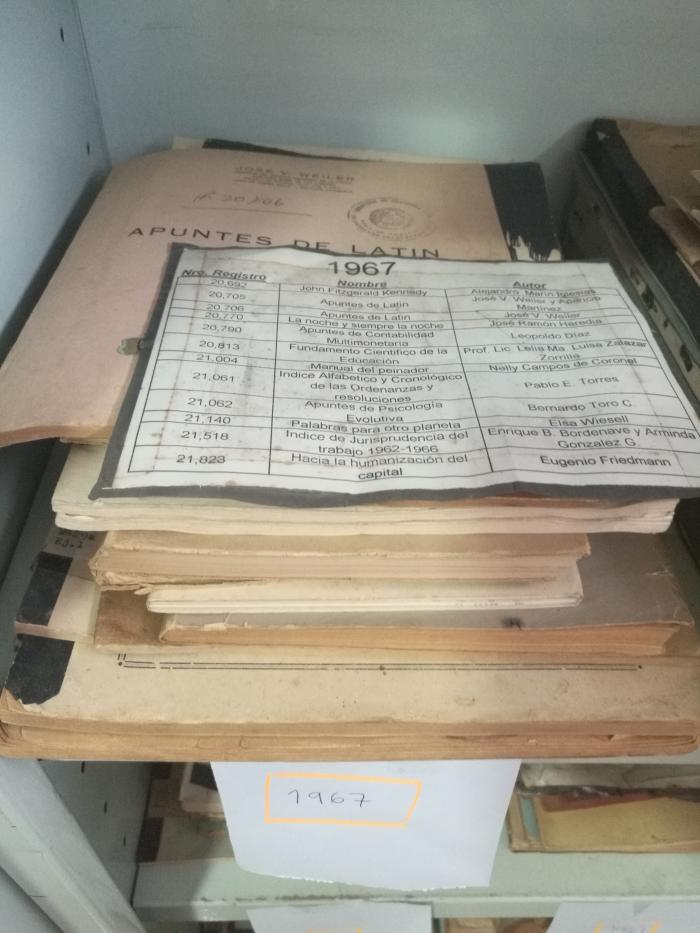 Los primeros trabajos en la BACCN son con los documentos enviados por la Dirección Nacional de Propiedad Intelectual (DINAPI), los cuales consisten en un aproximado de 100 cajas, con un promedio de 50 sobres, dentro de los que se encuentran obras inéditas que datan del año 1.950 al 2005. Entre esos materiales se pueden observar libros, anillados, cintas de audio en VHS, fotografías en menor escala, cassettes, planos, copias de manuscritos, partituras, etc.; todos estos con sus respectivos códigos, números de registro y cajas.