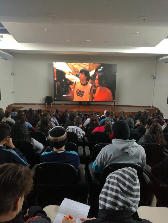En el marco del ciclo de cine nacional “Ta’angá”, desarrollado por el Centro Cultural de la República Cabildo, y el cual se viene llevando a cabo en el salón auditorio de la Biblioteca del Congreso de la Nación; el día de hoy los alumnos de nivel medio del Colegio Naciones Unidas visitó la sede de la BACCN para la proyección del filme “7 cajas” de Maneglia- Schémbori producciones.