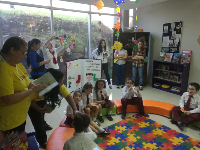 Posteriormente, realizaron una pequeña merienda en el comedor, para continuar con las actividades que fueron preparadas para cada grado. En la sala bebeteca, los chicos del 1er. grado participaron de un cuento animado llamado “Ana va a la granja”, utilizando pictoramas y otros libros de apoyo.