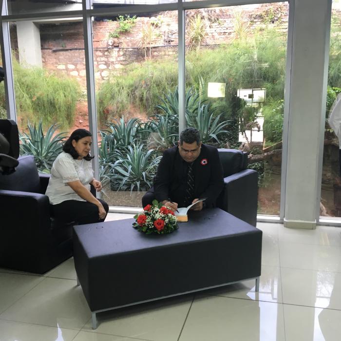 La Lic. Evangelina Cabrera recibió en donación cuatro ejemplares del Libro "Secretos del Himno Nacional", texto histórico musical escrito por el director del Ateneo Paraguayo, César Manuel Barrios y prologado por el embajador de la República Oriental del Uruguay, Lic. Federico José Perazza.