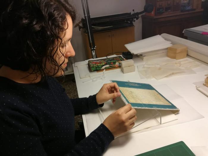 Gabriela estudió con restauradores de fama internacional como las doctoras Claudia Benvestito y Silvia Pugliese. Son estudios y prácticas de técnicas de encuadernación, de reparaciones y restauración de documentos. Asimismo, cursó en la ciudad de Lecce, en el Centro Cartáceo de materiales en papel, con Renate Mesmer; allí recibió orientaciones y sugerencias prácticas para la conservación de libros y documentos. Asimismo, realizó visitas guiadas en el Departamento de Conservación de la Biblioteca de la afamada Universidad Gregoriana y en el Instituto de Patología del libro de la Ciudad Eterna.